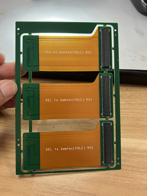 材料結(jié)構(gòu): 雙面膠+低損耗黃色覆蓋膜+(線(xiàn)路銅+膠+高頻介質(zhì)聚酰亞胺基材+膠+線(xiàn)路銅)+低損耗黃色覆蓋膜。 板厚: 0.1-0.35mm 補(bǔ)強(qiáng): PI/FR4/不銹鋼 沉金/OSP/鎳鈀金 阻焊: 黃膜白字 銅厚: 0.5/1/2 oz 最小線(xiàn)寬線(xiàn)距: 2mil
